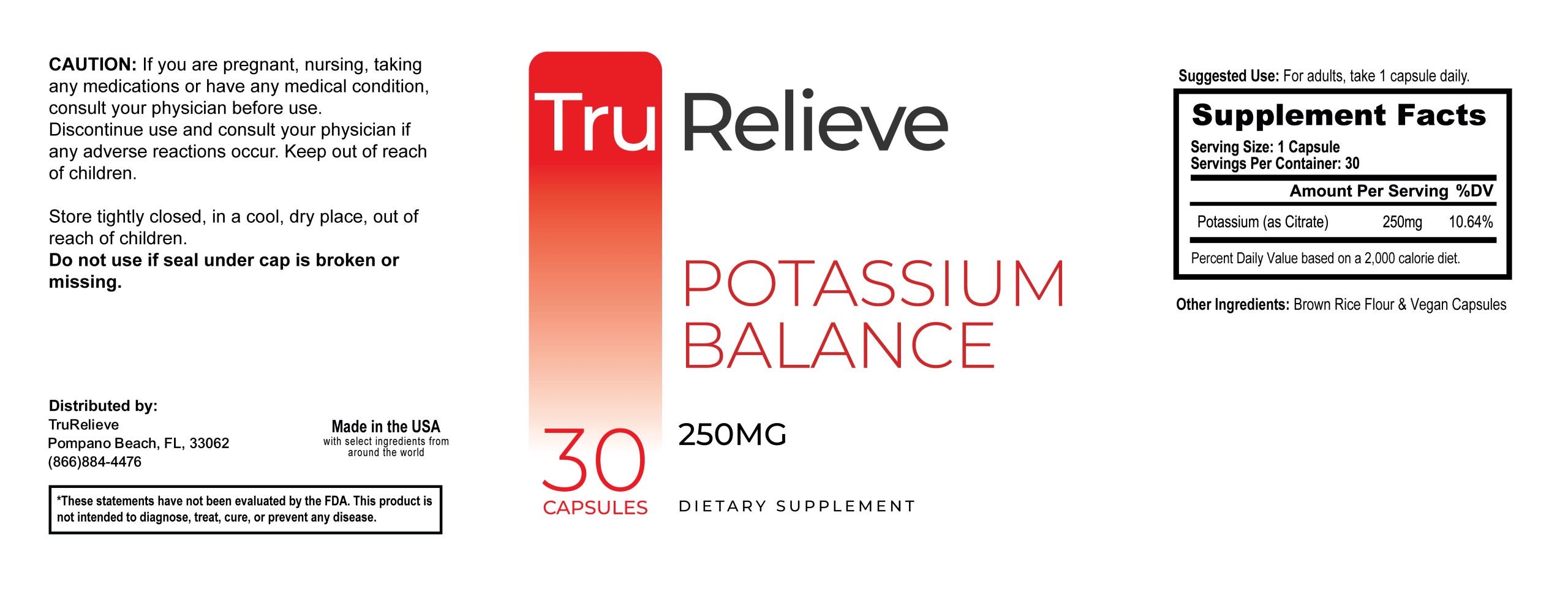 Our TruRelieve Potassium Balance is designed to help maintain optimal potassium levels, supporting healthy heart function, proper muscle activity, and overall electrolyte balance. Formulated with highly bioavailable potassium and complementary minerals, it helps your body stay hydrated, energized, and functioning at its best.